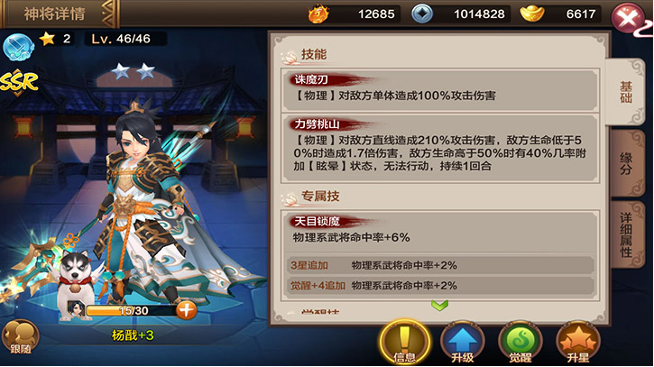 点击可对该神将进行升级操作。