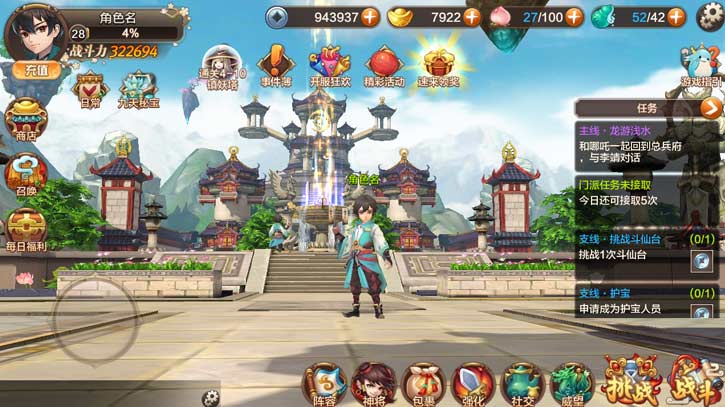 点击可进入阵容界面,进行阵容选择编排、神将快速强化等操作。